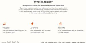 Zapier functions as a powerful no-code automation platform that connects your favorite apps and services. The platform enables users to create automated workflows called “Zaps” that trigger actions between different applications.